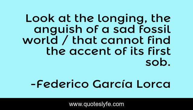 This page presents the quote "Look at the longing, the anguish of a sad fossil world / that cannot find the accent of its first sob.". Author of this quote is Federico García Lorca. This quote is about sadness, historicity, lonliness, history,.