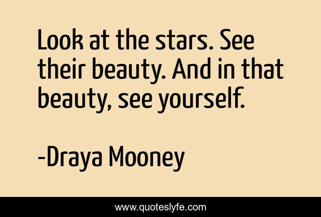 This page presents the quote "Look at the stars. See their beauty. And in that beauty, see yourself.". Author of this quote is Draya Mooney. This quote is about beauty, meaning-of-life, life-lessons, stars,.