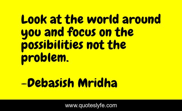 This page presents the quote "Look at the world around you and focus on the possibilities not the problem.". Author of this quote is Debasish Mridha. This quote is about inspirational, philosophy, debasish-mridha, look-at-the-world, quotes, debasish-mridha-md, focus-on-possibilities, enthusiasm, don-t-focus-on-the-problem,.