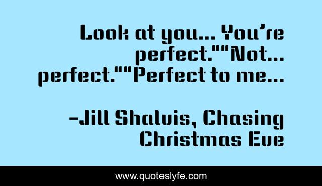 This page presents the quote "Look at you… You’re perfect.""Not… perfect.""Perfect to me…". Author of this quote is Jill Shalvis, Chasing Christmas Eve. .