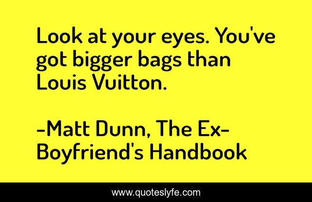 This page presents the quote "Look at your eyes. You've got bigger bags than Louis Vuitton.". Author of this quote is Matt Dunn, The Ex-Boyfriend's Handbook. This quote is about humorous, funny, comedy, louis-vuitton,.