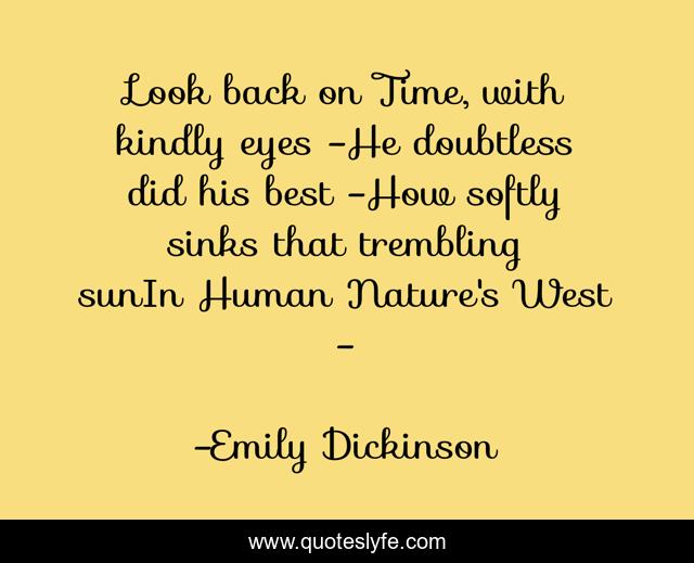 "Emily Dickinson Quotes." Quoteslyfe.com, 2025. Sat. 06 Dec. 2025. <https://www.quoteslyfe.com/quote/Look-back-on-Time-with-kindly-eyes-38622>.