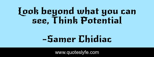 This page presents the quote "Look beyond what you can see, Think Potential". Author of this quote is Samer Chidiac. This quote is about ambition, strategy,.