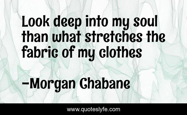This page presents the quote "Look deep into my soul than what stretches the fabric of my clothes". Author of this quote is Morgan Chabane. This quote is about self-respect, self-trust, self-appreciation,.