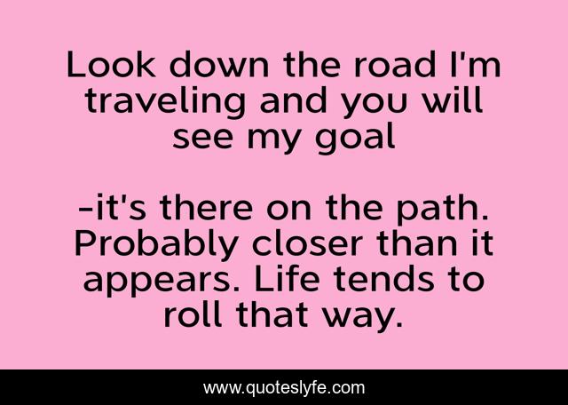 "it’s there on the path. Probably closer than it appears. Life tends to roll that way. Quotes." Quoteslyfe.com, 2025. Mon. 08 Dec. 2025. <https://www.quoteslyfe.com/quote/Look-down-the-road-I-m-traveling-58027>.
