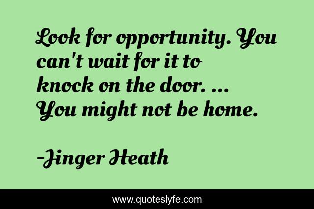 This page presents the quote "Look for opportunity. You can't wait for it to knock on the door. ... You might not be home.". Author of this quote is Jinger Heath. .