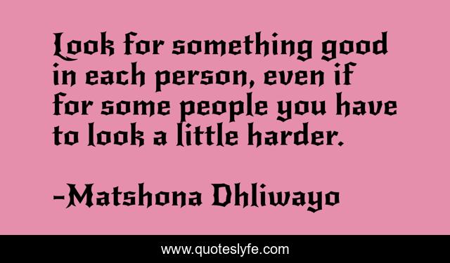 "Matshona Dhliwayo Quotes." Quoteslyfe.com, 2025. Fri. 05 Dec. 2025. <https://www.quoteslyfe.com/quote/Look-for-something-good-in-each-person-188330>.