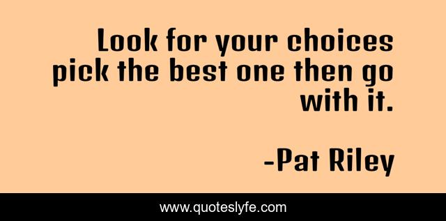 This page presents the quote "Look for your choices pick the best one then go with it.". Author of this quote is Pat Riley. .