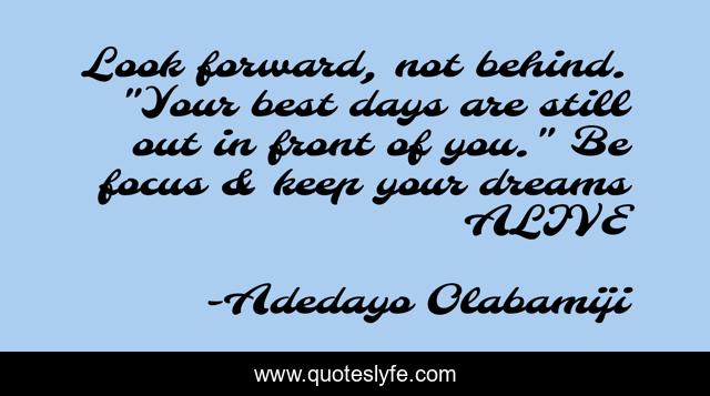 "Adedayo Olabamiji Quotes." Quoteslyfe.com, 2025. Fri. 05 Dec. 2025. <https://www.quoteslyfe.com/quote/Look-forward-not-behind-Your-best-days-38287>.