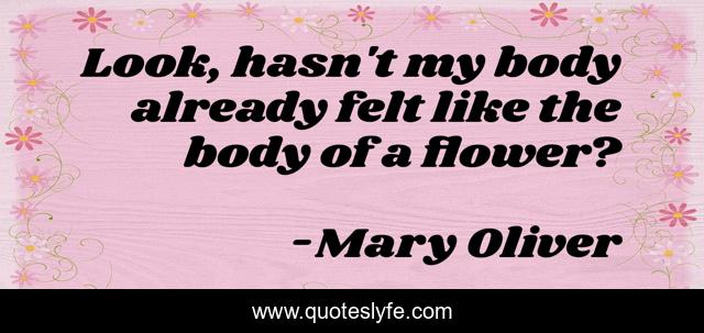 This page presents the quote "Look, hasn't my body already felt like the body of a flower?". Author of this quote is Mary Oliver. This quote is about body, flowers,.