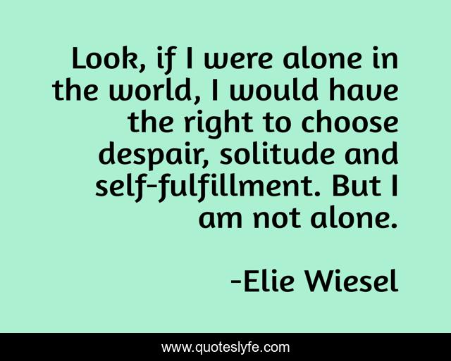 This page presents the quote "Look, if I were alone in the world, I would have the right to choose despair, solitude and self-fulfillment. But I am not alone.". Author of this quote is Elie Wiesel. This quote is about world, solitude,.