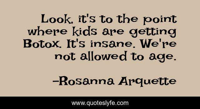 This page presents the quote "Look, it's to the point where kids are getting Botox. It's insane. We're not allowed to age.". Author of this quote is Rosanna Arquette. This quote is about insane, kids, look,.