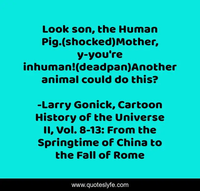 "Larry Gonick, Cartoon History of the Universe II, Vol. 8-13: From the Springtime of China to the Fall of Rome Quotes." Quoteslyfe.com, 2025. Mon. 08 Dec. 2025. <https://www.quoteslyfe.com/quote/Look-son-the-Human-Pig-shocked-Mother-70423>.