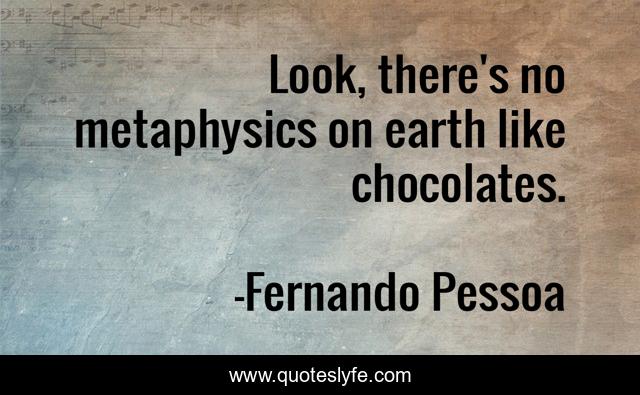 This page presents the quote "Look, there's no metaphysics on earth like chocolates.". Author of this quote is Fernando Pessoa. This quote is about dessert, humour, chocolate,.