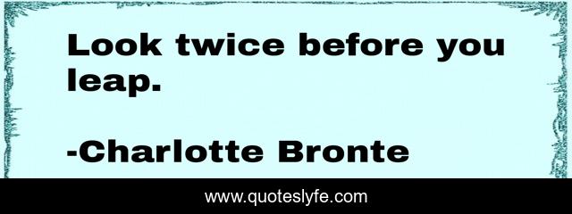 This page presents the quote "Look twice before you leap.". Author of this quote is Charlotte Bronte. This quote is about leap, look,.