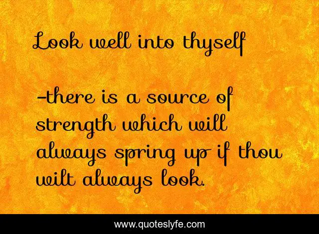 "there is a source of strength which will always spring up if thou wilt always look. Quotes." Quoteslyfe.com, 2025. Fri. 05 Dec. 2025. <https://www.quoteslyfe.com/quote/Look-well-into-thyself-199322>.