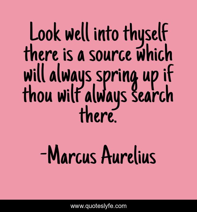 This page presents the quote "Look well into thyself there is a source which will always spring up if thou wilt always search there.". Author of this quote is Marcus Aurelius. This quote is about self, reliance,.