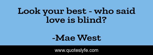 This page presents the quote "Look your best - who said love is blind?". Author of this quote is Mae West. This quote is about blind, love, affection, love is,.