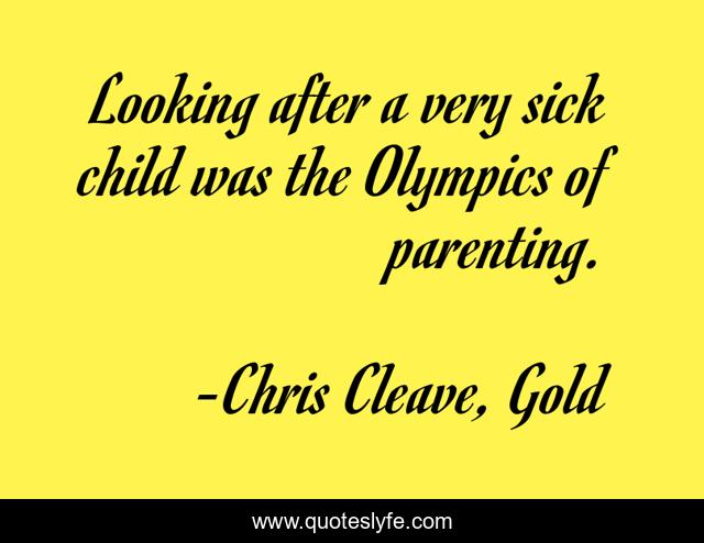 This page presents the quote "Looking after a very sick child was the Olympics of parenting.". Author of this quote is Chris Cleave, Gold. This quote is about caring, caring-loved-one, illness, sacrifice, parenting, caring-for-others,.