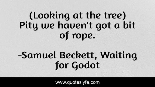 This page presents the quote "(Looking at the tree) Pity we haven't got a bit of rope.". Author of this quote is Samuel Beckett, Waiting for Godot. .