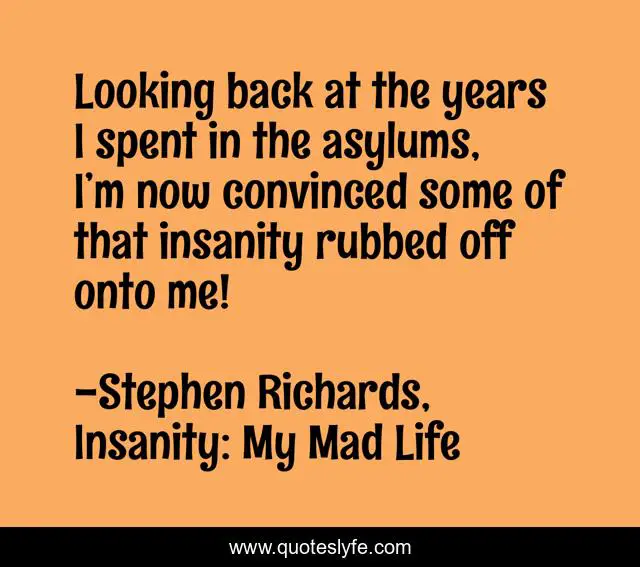 "Stephen Richards, Insanity: My Mad Life Quotes." Quoteslyfe.com, 2025. Sat. 06 Dec. 2025. <https://www.quoteslyfe.com/quote/Looking-back-at-the-years-I-spent-221037>.