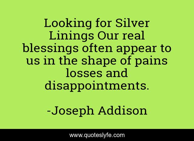 "Joseph Addison Quotes." Quoteslyfe.com, 2025. Fri. 05 Dec. 2025. <https://www.quoteslyfe.com/quote/Looking-for-Silver-Linings-Our-real-blessings-265299>.