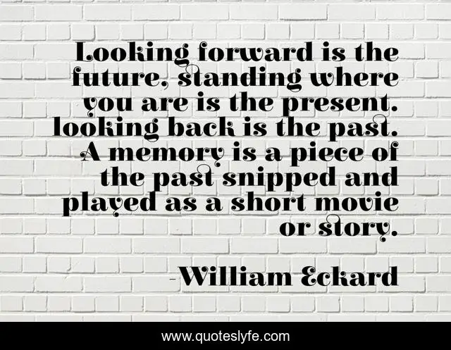 This page presents the quote "Looking forward is the future, standing where you are is the present. looking back is the past. A memory is a piece of the past snipped and played as a short movie or story.". Author of this quote is William Eckard. .
