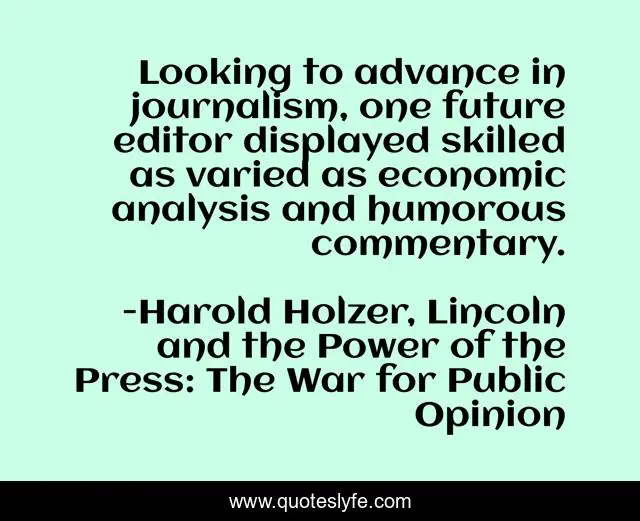 This page presents the quote "Looking to advance in journalism, one future editor displayed skilled as varied as economic analysis and humorous commentary.". Author of this quote is Harold Holzer, Lincoln and the Power of the Press: The War for Public Opinion. This quote is about openness, job, vocation, versatility, humility,.