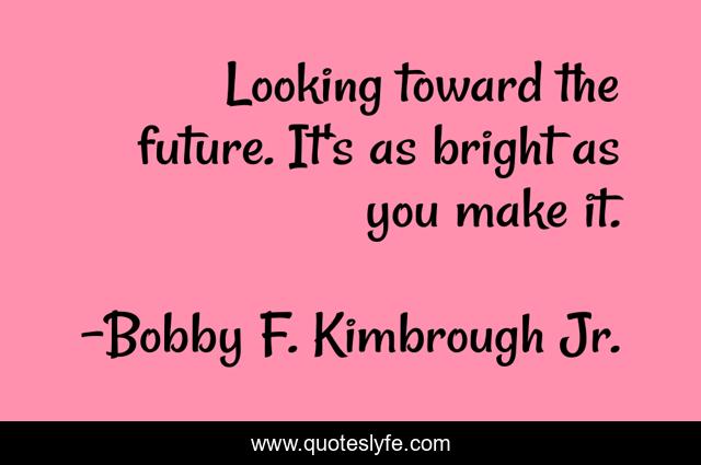 This page presents the quote "Looking toward the future. It's as bright as you make it.". Author of this quote is Bobby F. Kimbrough Jr.. This quote is about motivation, strength, god, survival, midnight, spiritual, existence,.