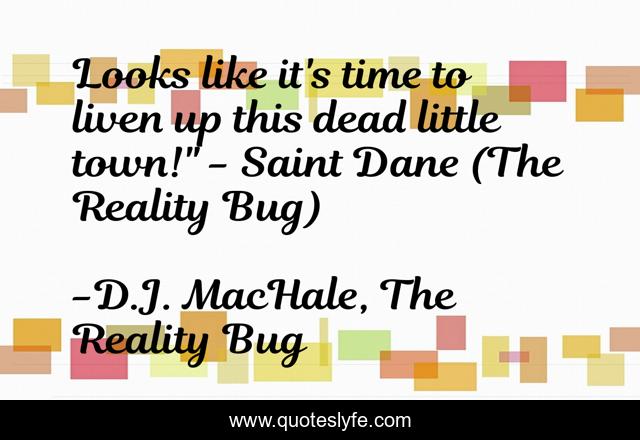 This page presents the quote "Looks like it's time to liven up this dead little town!" - Saint Dane (The Reality Bug)". Author of this quote is D.J. MacHale, The Reality Bug. .