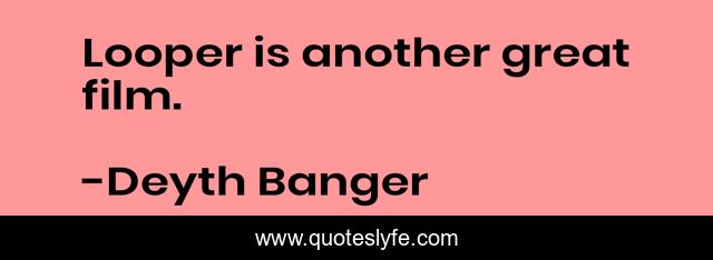 This page presents the quote "Looper is another great film.". Author of this quote is Deyth Banger. This quote is about great, another, film, looper,.
