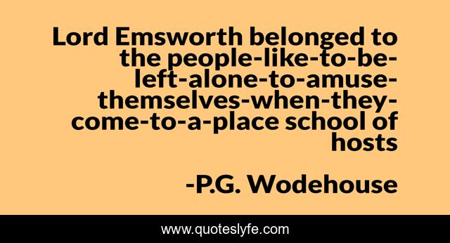 This page presents the quote "Lord Emsworth belonged to the people-like-to-be-left-alone-to-amuse-themselves-when-they-come-to-a-place school of hosts". Author of this quote is P.G. Wodehouse. This quote is about humorous, humor, humour,.