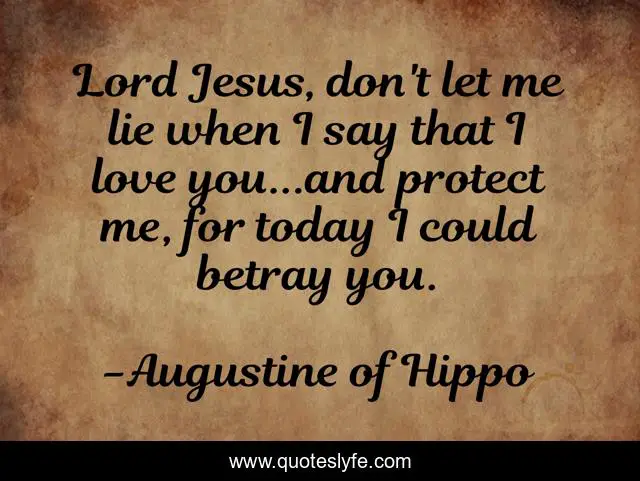 This page presents the quote "Lord Jesus, don't let me lie when I say that I love you...and protect me, for today I could betray you.". Author of this quote is Augustine of Hippo. This quote is about love, belief, affection, jesus,.