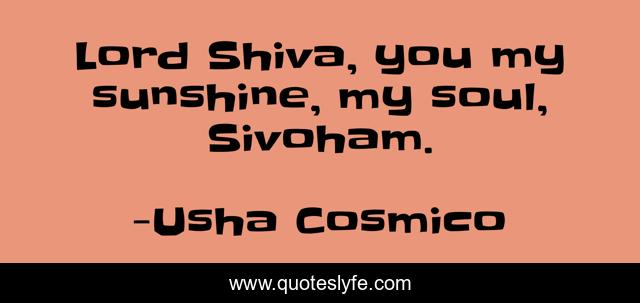 "Usha Cosmico Quotes." Quoteslyfe.com, 2025. Tue. 09 Dec. 2025. <https://www.quoteslyfe.com/quote/Lord-Shiva-you-my-sunshine-my-soul-216659>.