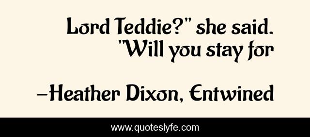 This page presents the quote "Lord Teddie?" she said. "Will you stay for". Author of this quote is Heather Dixon, Entwined. .