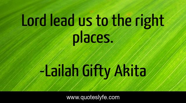 This page presents the quote "Lord lead us to the right places.". Author of this quote is Lailah Gifty Akita. This quote is about places-of-the-world, right, lord-s-mercy, places, rights, god-s-plan, god, right-path, god-s-grace,.