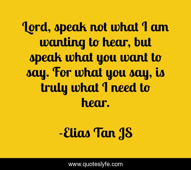 "Elias Tan JS Quotes." Quoteslyfe.com, 2025. Sun. 07 Dec. 2025. <https://www.quoteslyfe.com/quote/Lord-speak-not-what-I-am-wanting-206292>.