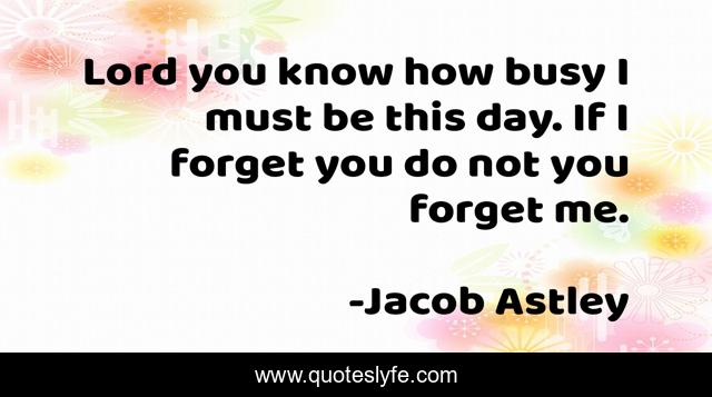 This page presents the quote "Lord you know how busy I must be this day. If I forget you do not you forget me.". Author of this quote is Jacob Astley. .