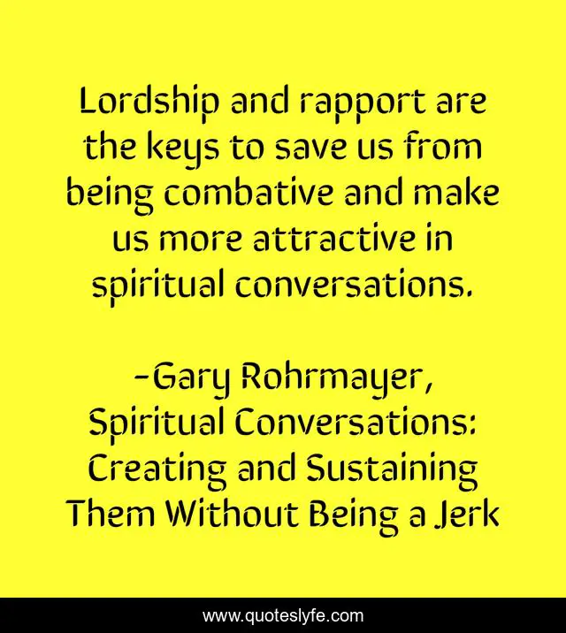 "Gary Rohrmayer, Spiritual Conversations: Creating and Sustaining Them Without Being a Jerk Quotes." Quoteslyfe.com, 2025. Sun. 07 Dec. 2025. <https://www.quoteslyfe.com/quote/Lordship-and-rapport-are-the-keys-to-180073>.