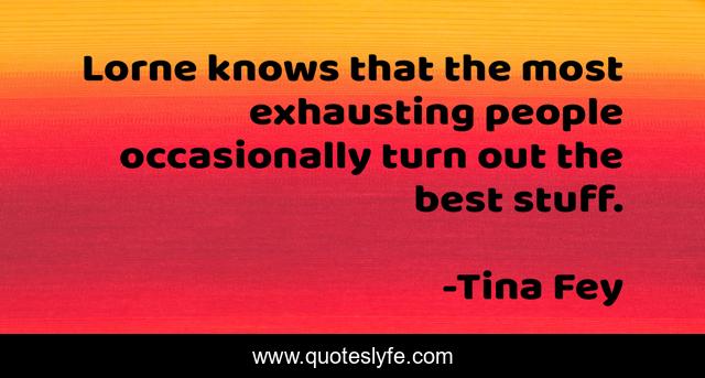 This page presents the quote "Lorne knows that the most exhausting people occasionally turn out the best stuff.". Author of this quote is Tina Fey. .