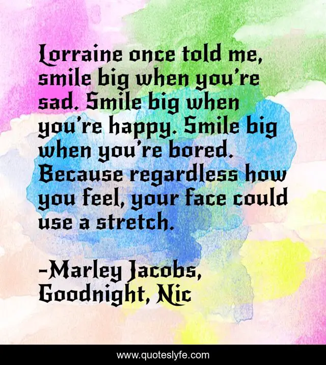 "Marley Jacobs, Goodnight, Nic Quotes." Quoteslyfe.com, 2025. Fri. 05 Dec. 2025. <https://www.quoteslyfe.com/quote/Lorraine-once-told-me-smile-big-when-159749>.