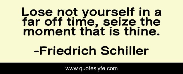 This page presents the quote "Lose not yourself in a far off time, seize the moment that is thine.". Author of this quote is Friedrich Schiller. This quote is about moment, yourself, seize,.