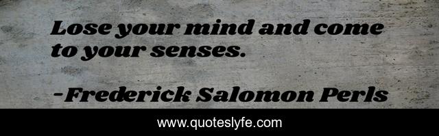 This page presents the quote "Lose your mind and come to your senses.". Author of this quote is Frederick Salomon Perls. This quote is about enthusiasm, senses, mind, inspirational,.