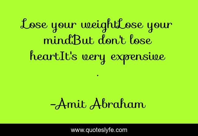 This page presents the quote "Lose your weightLose your mindBut don't lose heartIt's very expensive .". Author of this quote is Amit Abraham. This quote is about heart, mind, weight, lose,.