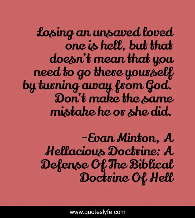 "Evan Minton, A Hellacious Doctrine: A Defense Of The Biblical Doctrine Of Hell Quotes." Quoteslyfe.com, 2025. Fri. 05 Dec. 2025. <https://www.quoteslyfe.com/quote/Losing-an-unsaved-loved-one-is-hell-201907>.