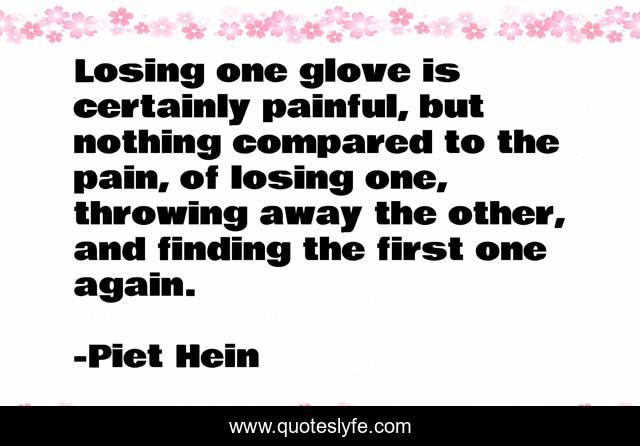 This page presents the quote "Losing one glove is certainly painful, but nothing compared to the pain, of losing one, throwing away the other, and finding the first one again.". Author of this quote is Piet Hein. This quote is about losing, loss, lost,.