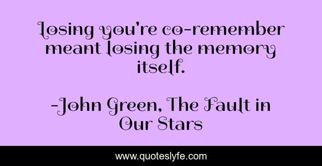 This page presents the quote "Losing you're co-remember meant losing the memory itself.". Author of this quote is John Green, The Fault in Our Stars. This quote is about death, dying, memory,.