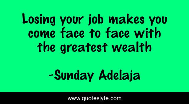 This page presents the quote "Losing your job makes you come face to face with the greatest wealth". Author of this quote is Sunday Adelaja. This quote is about life, blessing, finance, money, work, job, jobless, purpose, realization,.