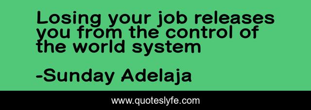 This page presents the quote "Losing your job releases you from the control of the world system". Author of this quote is Sunday Adelaja. This quote is about control, life, blessing, finance, freedom, work, free, job, joblessness,.