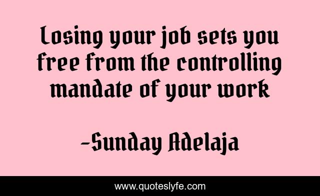 This page presents the quote "Losing your job sets you free from the controlling mandate of your work". Author of this quote is Sunday Adelaja. This quote is about life, blessing, finance, freedom, work, job, purpose, money, employment,.